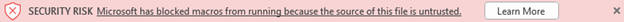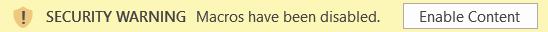 Due to a recent security enhancement by Microsoft, there is possibility that you will get a security warning that Microsoft has disabled built in macros. Microsoft made this change to the Windows operating system to ameliorate the possibility of downloading nefarious software.